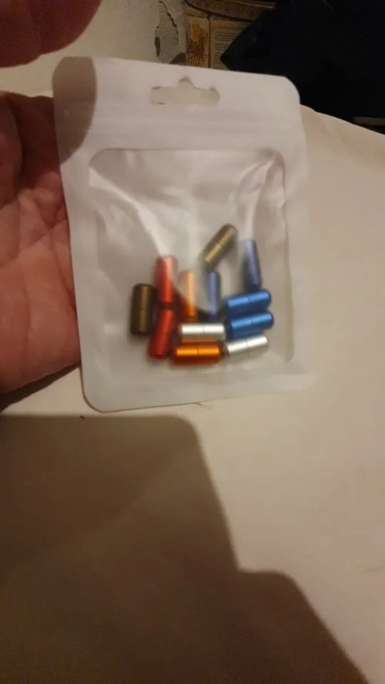 Концевики для шнурков отличные, железные. В применении просты-раскрутить концевик, про сунуть шнурок, поджечь кончики шнурков и завентить обе половинки. Однозначно ещё чёрные и синие закажу. Вид у обуви сразу меняется. Рекомендую однозначно. Доставка 15 дней.