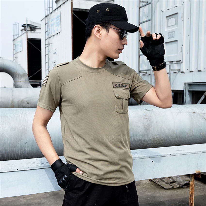Мужская камуфляжная рубашка в стиле милитари армии США, с короткими рукавами и карманами