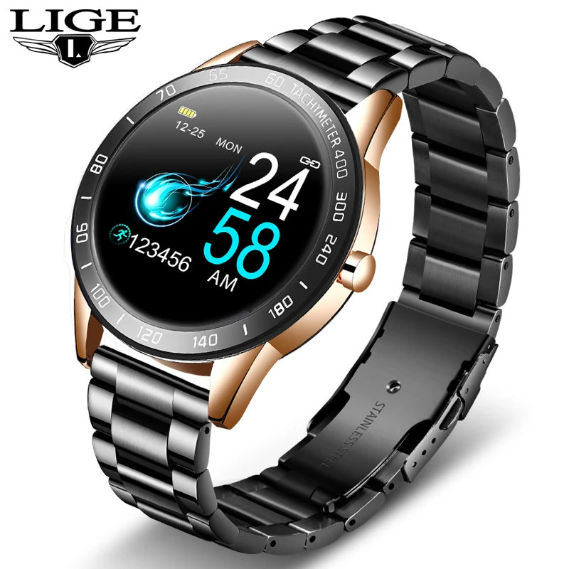 LIGE мужские Смарт-часы 2020, стальные Смарт-часы, мужские водонепроницаемые спортивные часы для iPhone, монитор сердечного ритма, информация о вызове, Смарт-часы