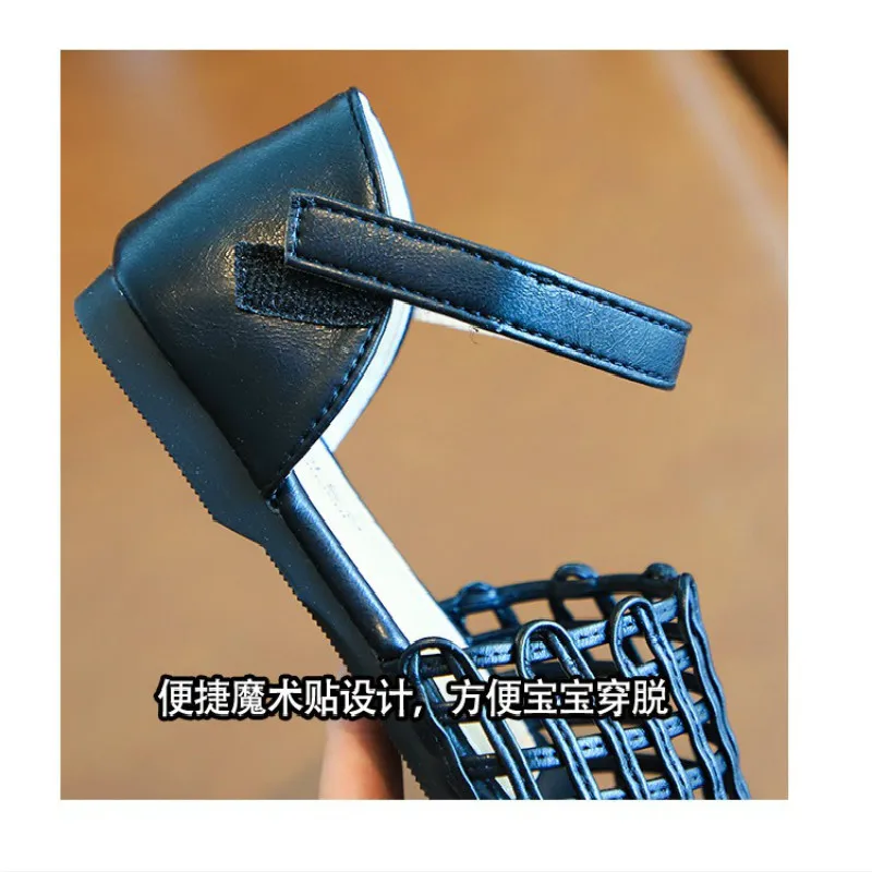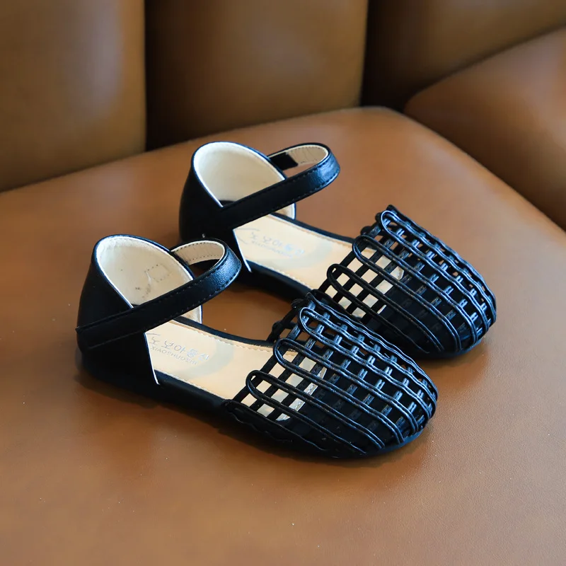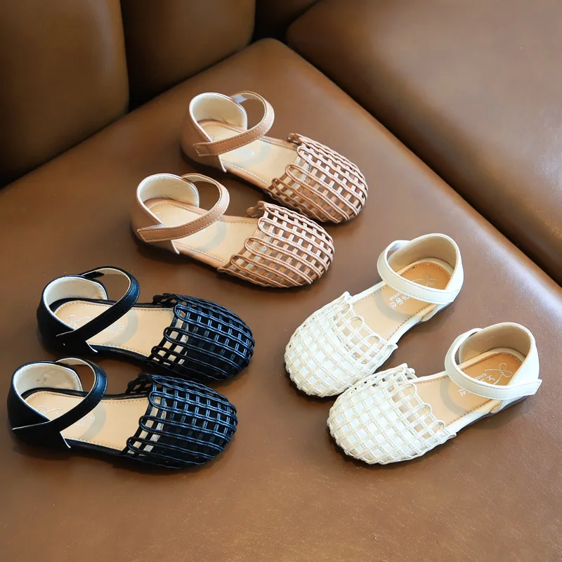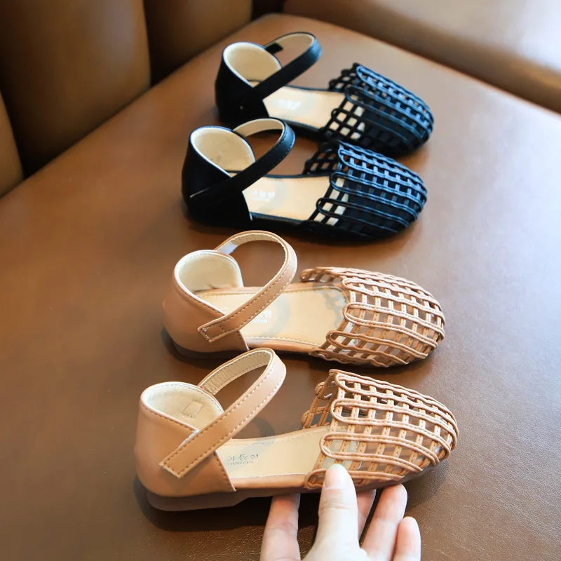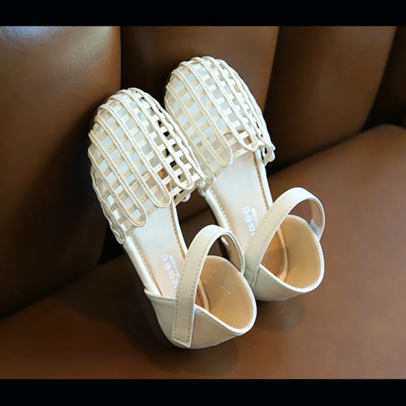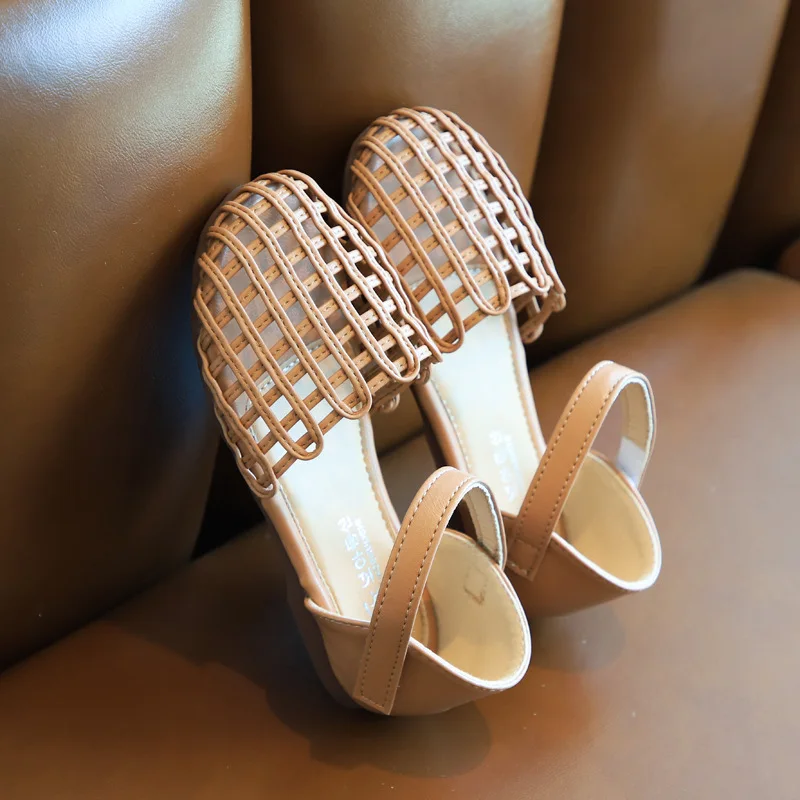 Сандалии из искусственной кожи в римском стиле для девочек; Детские дышащие туфли на плоской подошве; Тканые винтажные туфли принцессы; Детская пляжная обувь