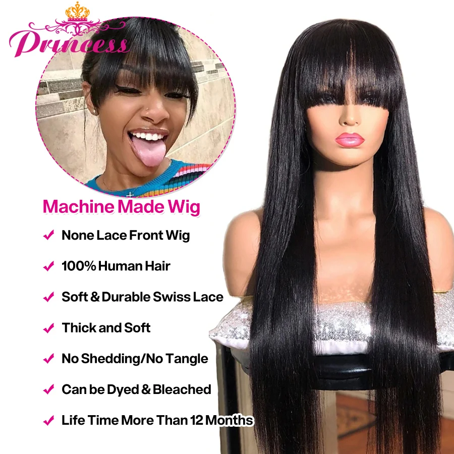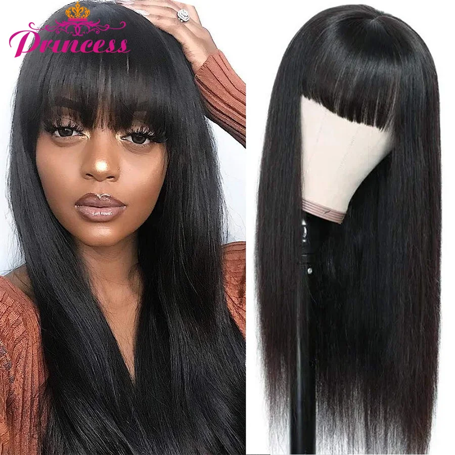 Парики из натуральных волос для чернокожих женщин, бразильский парик с челкой