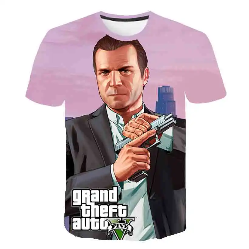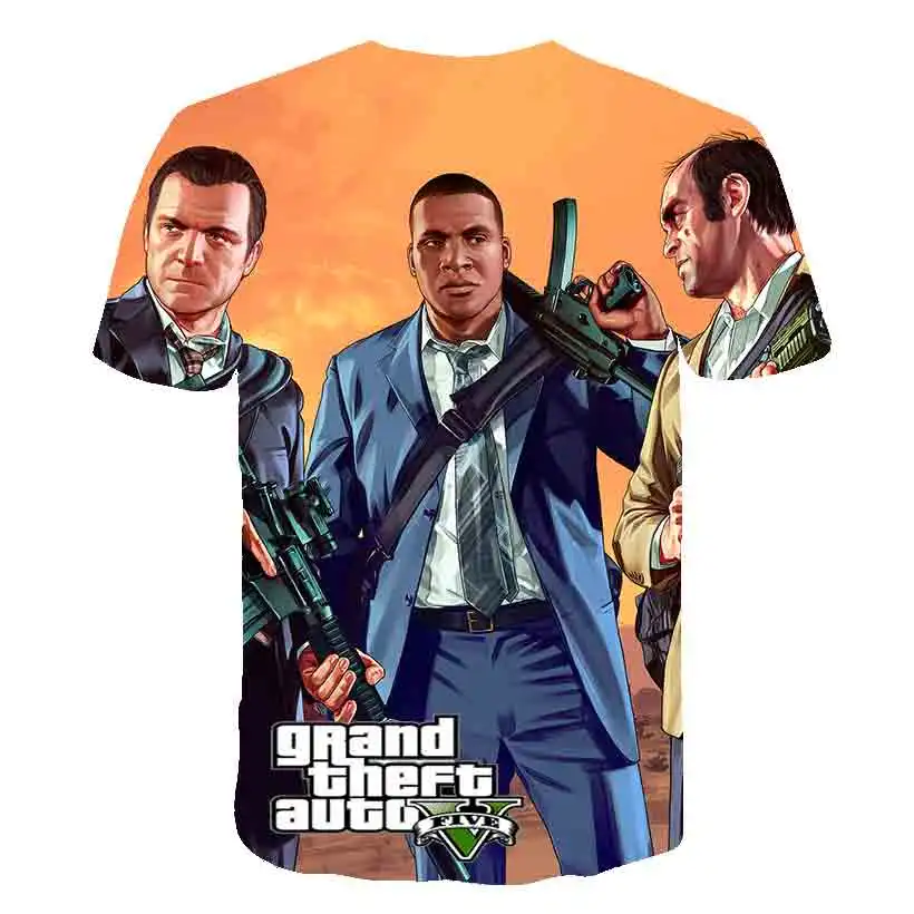 Футболка Grand Theft Auto Game GTA 5 для мальчиков, летняя 3D футболка, крутая детская футболка, футболка с красочным принтом, забавная одежда