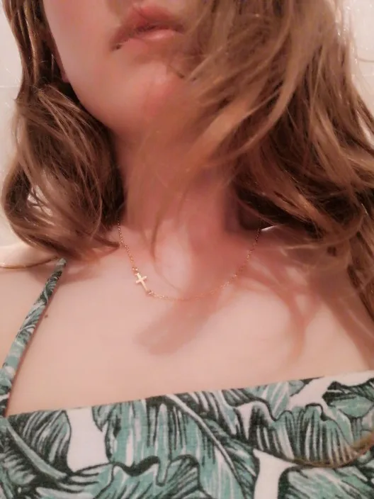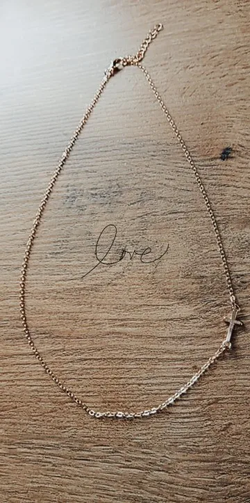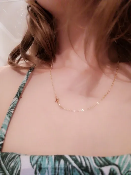 Мне нравится, и товар отправляется вовремя. Я думаю, что крест легко перевернет на обратную сторону, но он выглядит хорошо с обеих сторон, так что не беспокойтесь. У меня есть Любительская камера, поэтому не знаю, что она в фокусе xD Первая фотография такая короткая, как цепочка. Остальные-ожерелье полной длины. Спасибо вам