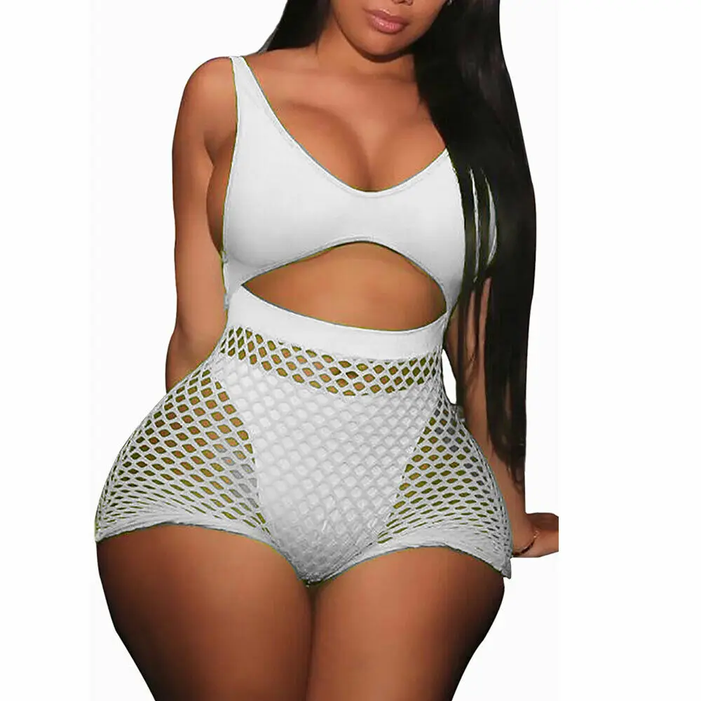 Женский сетчатый костюм пляжного типа, комплект из 2 предметов, топ без рукавов и шорты с вырезами спереди и открытой спиной