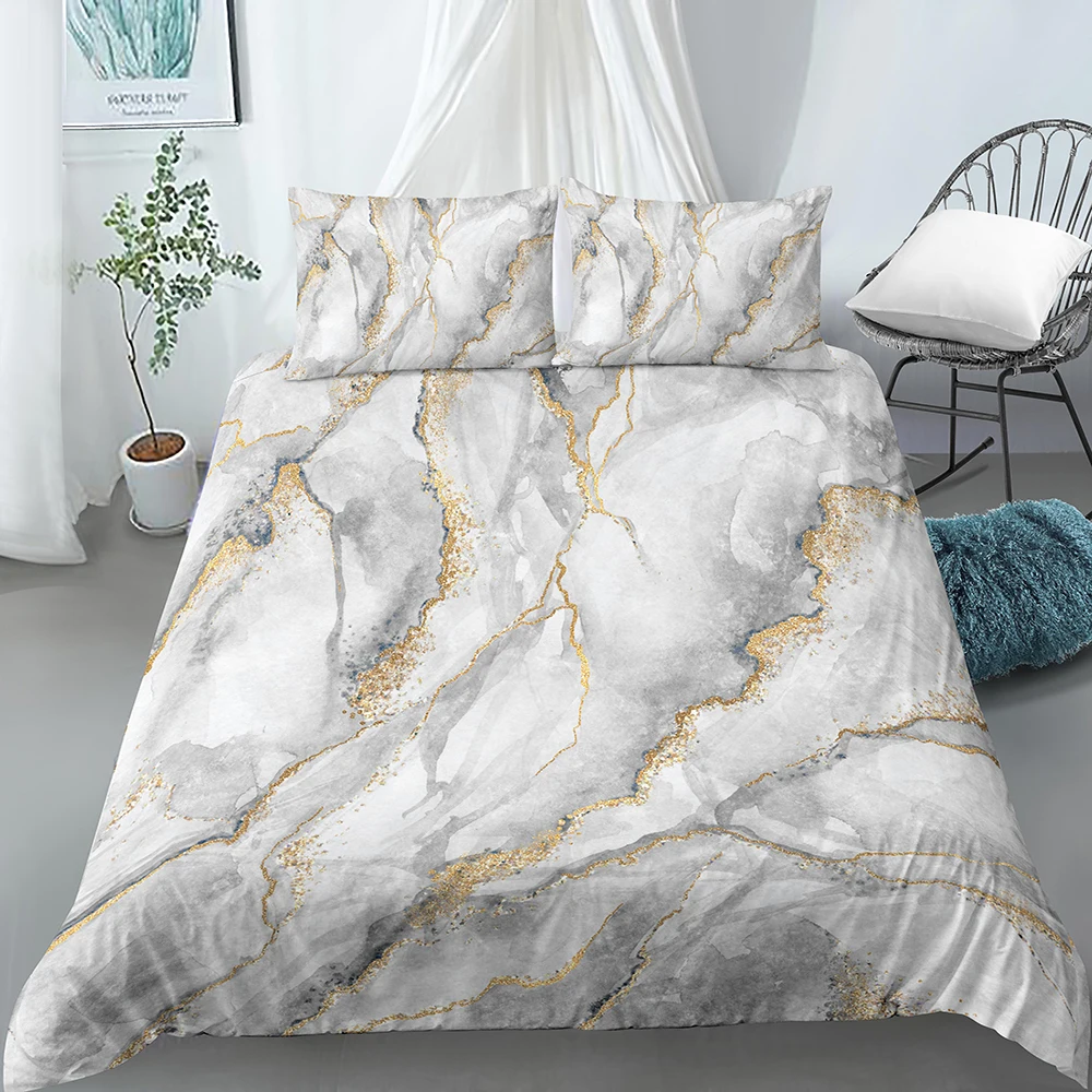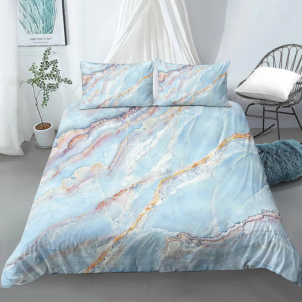 Комплект с мраморным пододеяльником, розовое золото, роскошное Мрам...
