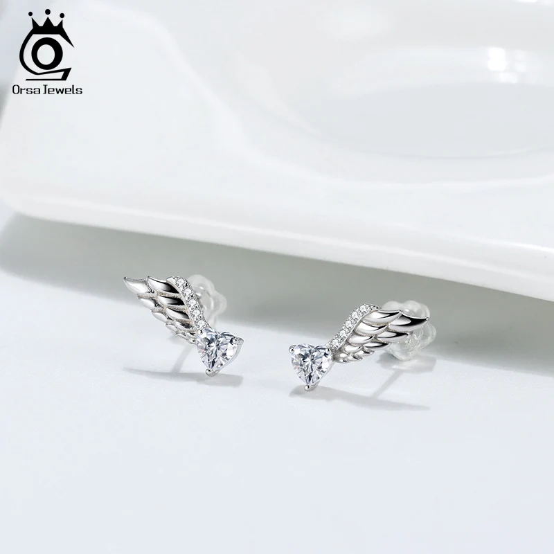 ORSA JEWELS 14 мм серьги-гвоздики в форме орла с большим камнем в форме сердца, Настоящее серебро 925 пробы, Женские Ювелирные украшения, подарок OSE313