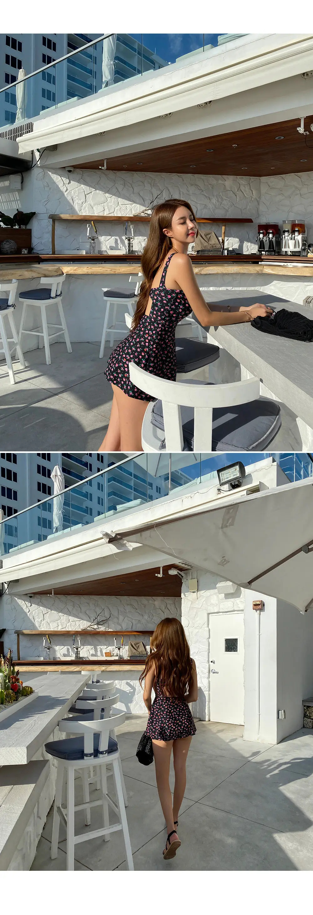 Женский слитный бразильский купальник, с цветочным принтом и открытой спиной, 2020