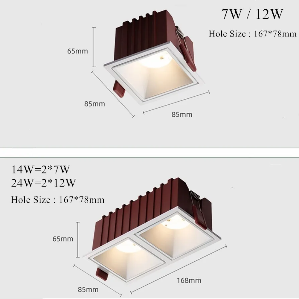 Квадратный безрамочный светильник DBF без ослепительного COB, встра...