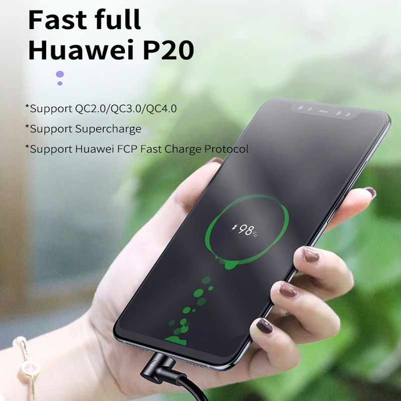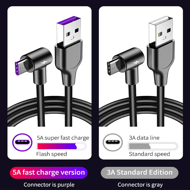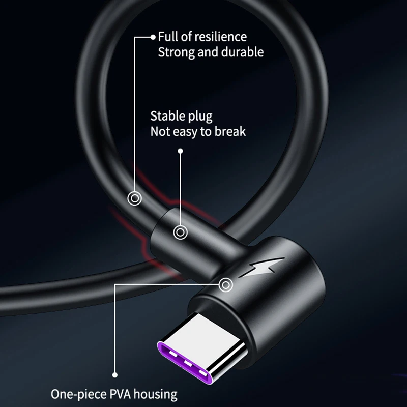Кабель Micro USB Type-C, 90 градусов, 5 А, для быстрой зарядки Huaw...