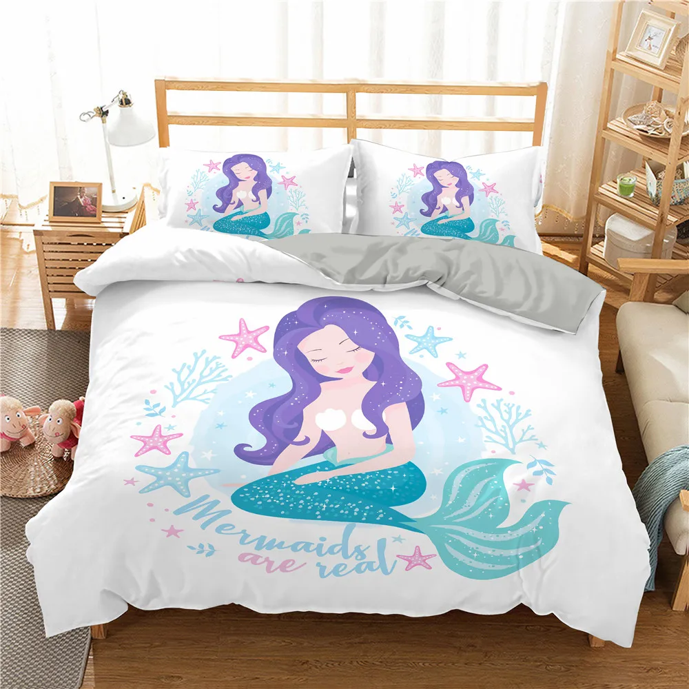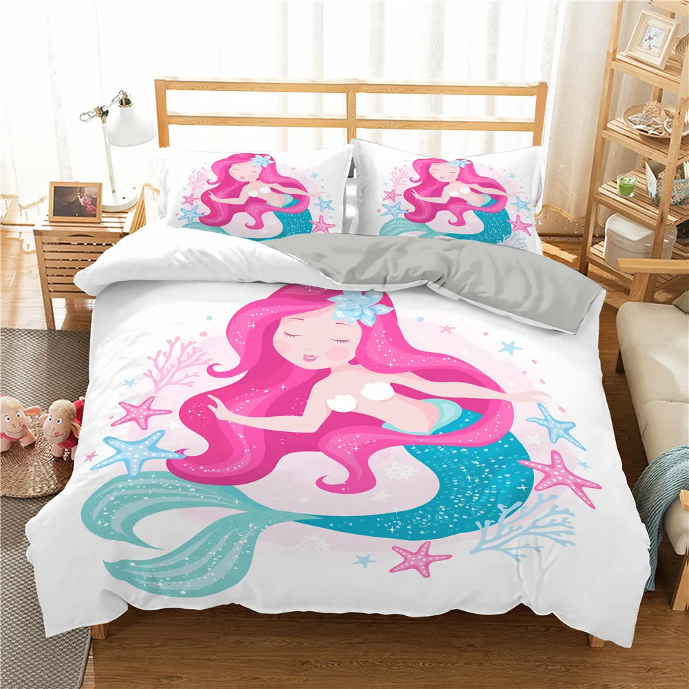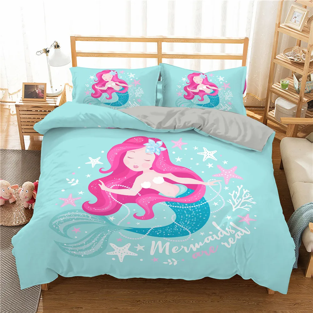 ZEIMON мультфильм Постельное белье Русалочка комплект из полиэстера для взрослыхдети девушка пододеяльник Стёганое одеяло наволочка студентов Комплект постельного белья