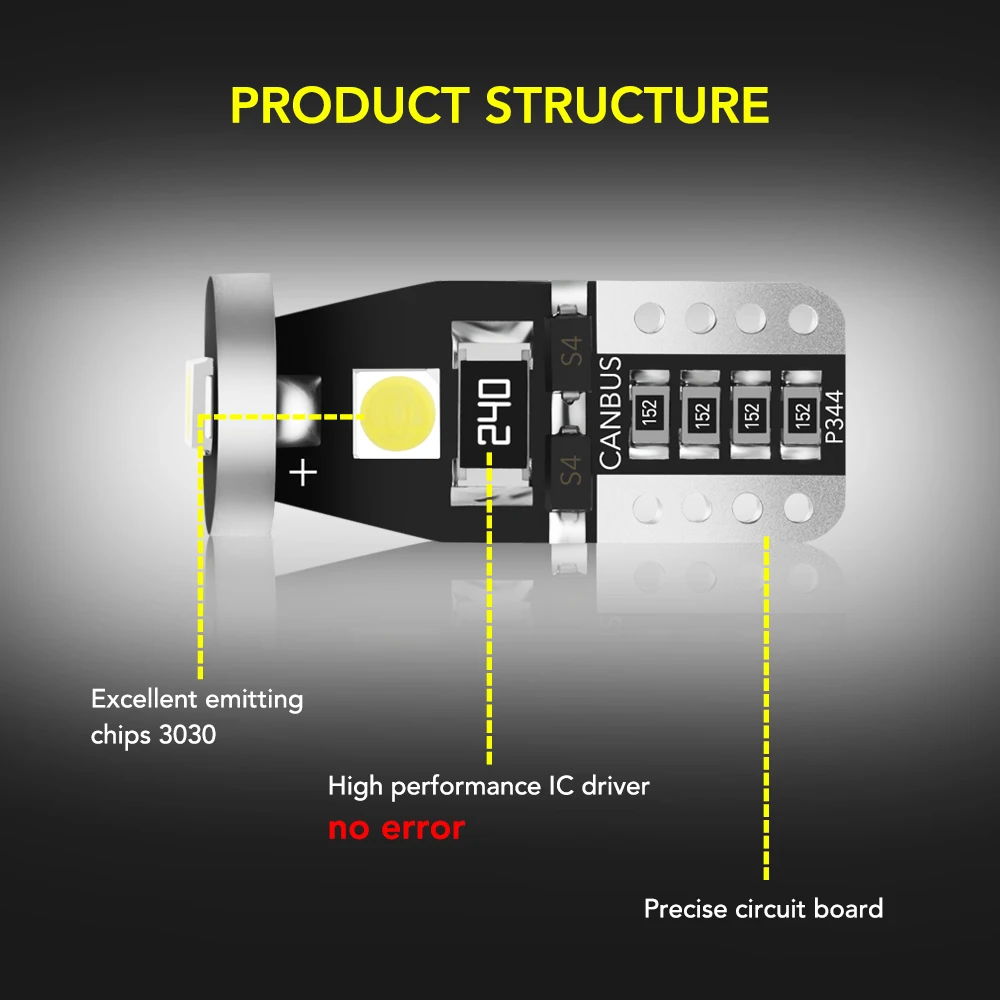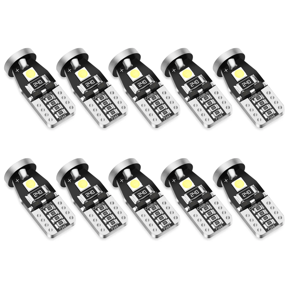 Автомобильный светодиодный светильник T10 W5W 10x Canbus, без ошибо...