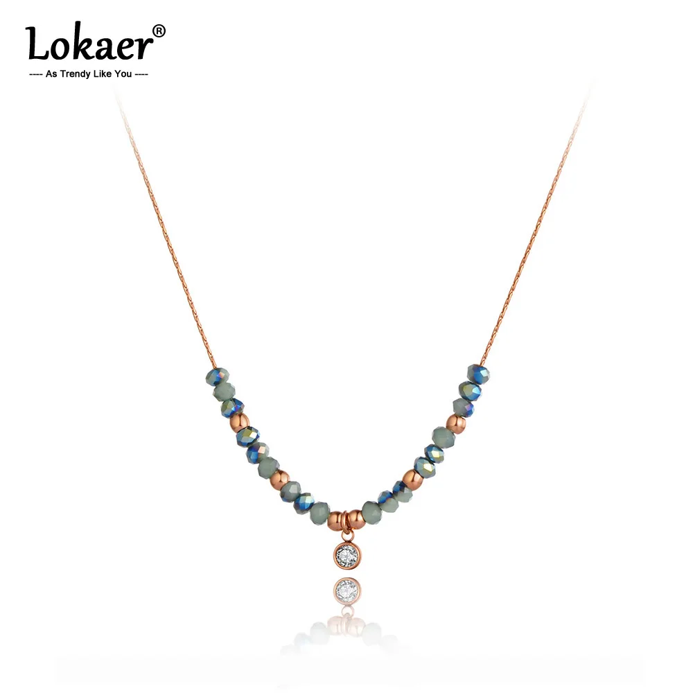 Женское колье-чокер Lokaer, Очаровательное ожерелье из титановой стали с разноцветными кристаллами, розовое золото, N20112