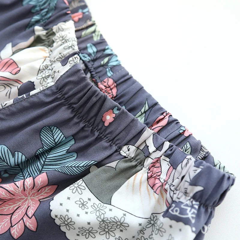 Пижама женская хлопковая, из двух предметов, с цветочным принтом и коротким рукавом, тонкая, повседневная, размера плюс