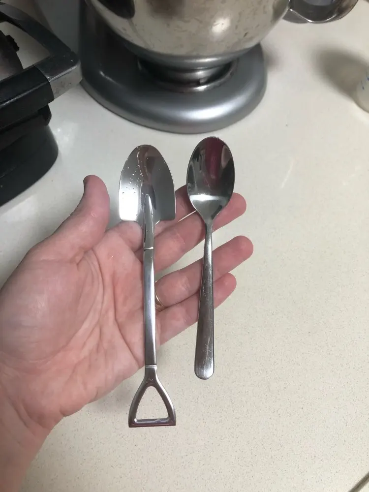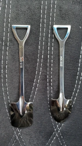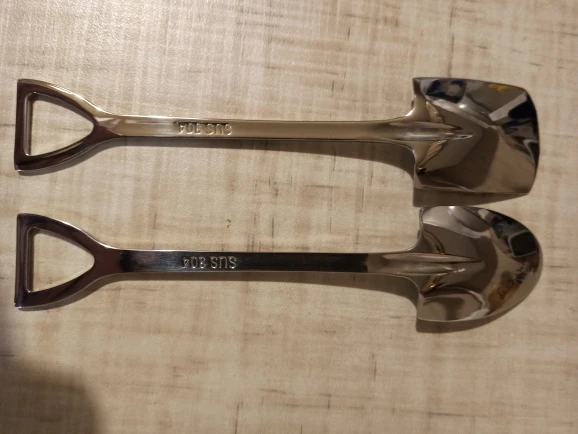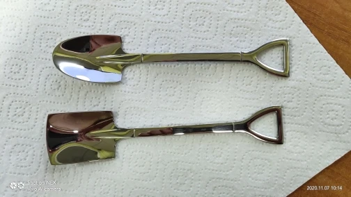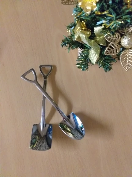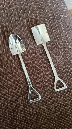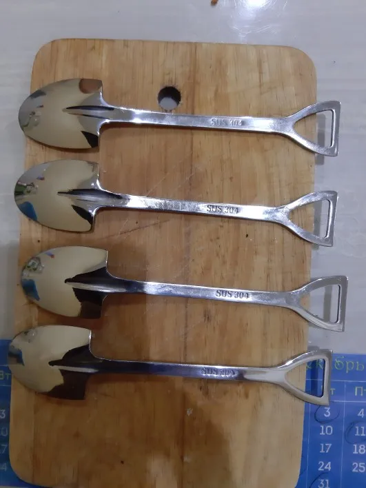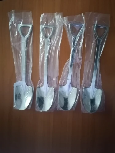 Хорошие ложки. Всё соответствует описанию. Доставка в Нижегородскую область 20 дней. Упакованы в обычный пакет. Материал - нержавейка. На фото, для сравнения, обычная чайная ложечка. Лопаты чуть больше стандартных чайных ложечек. Закруглённой мне показалось удобнее пользоваться. Спасибо!