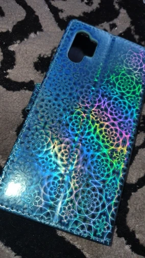 Дизайн кошелька, с прорезями для карт и наличных; Легко превращается в опору для просмотра видео.