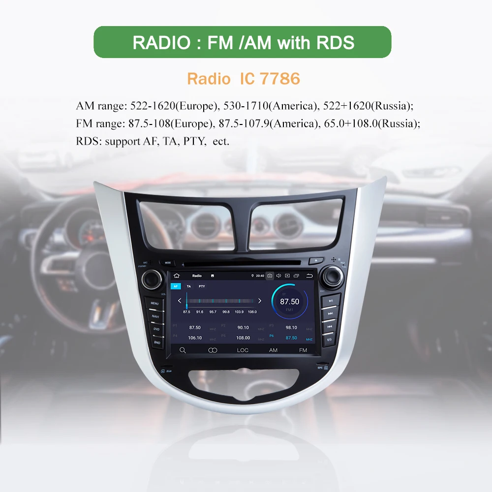 10. Встроенный Bluetooth для ручного бесплатного телефонного звонка, отображения телефонной книги, AM/FM радио RDS системы передачи данных.