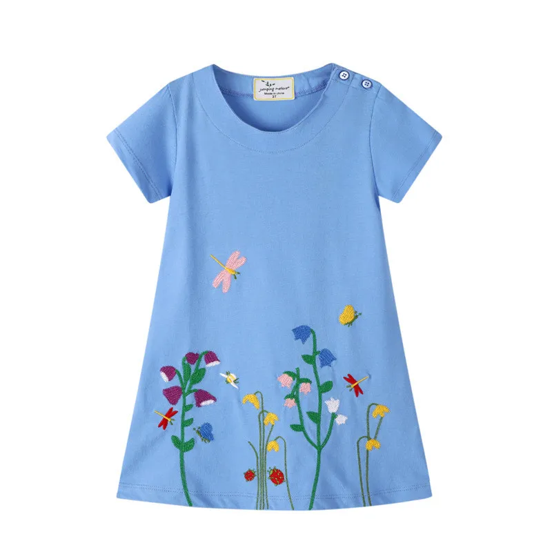 Платье принцессы для девочек, летнее хлопковое с цветочной вышивкой