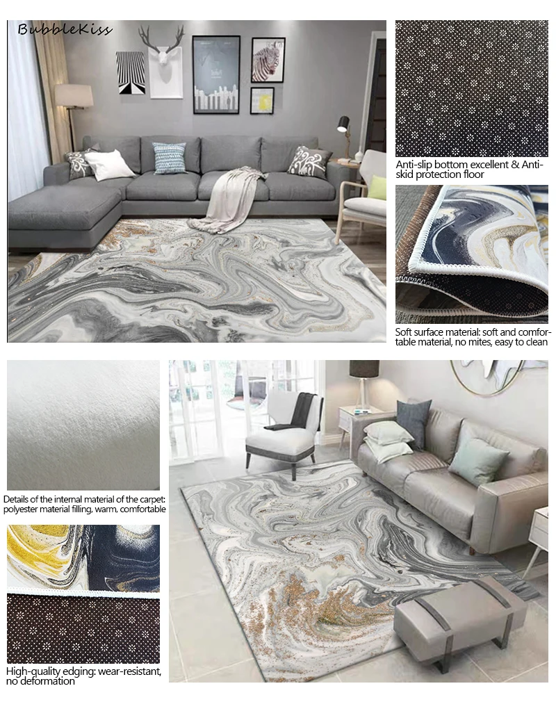Ковер пузырьковый поцелуй в скандинавском стиле с абстрактным морским серым узором для гостиной, домашний декор, большой ковер против морщин, ковер для спальни