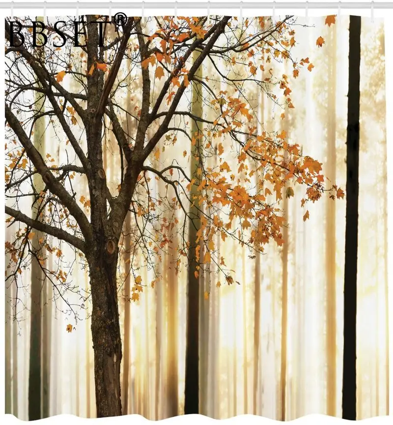 Осенняя занавеска для душа с изображением одинокого дерева с оранжевыми листьями на лесу, водонепроницаемая, разных размеров, Кортина де Бано, декор для ванной