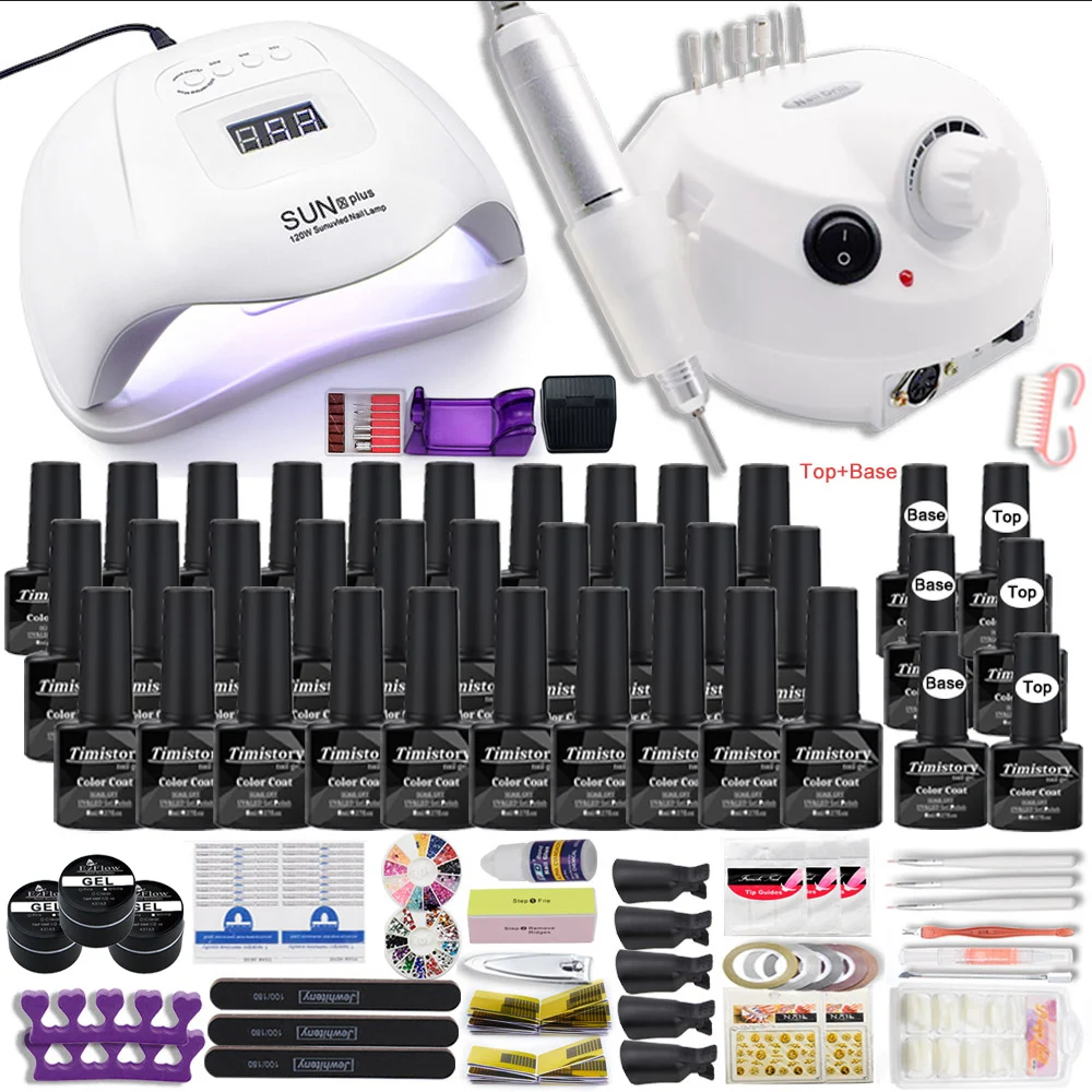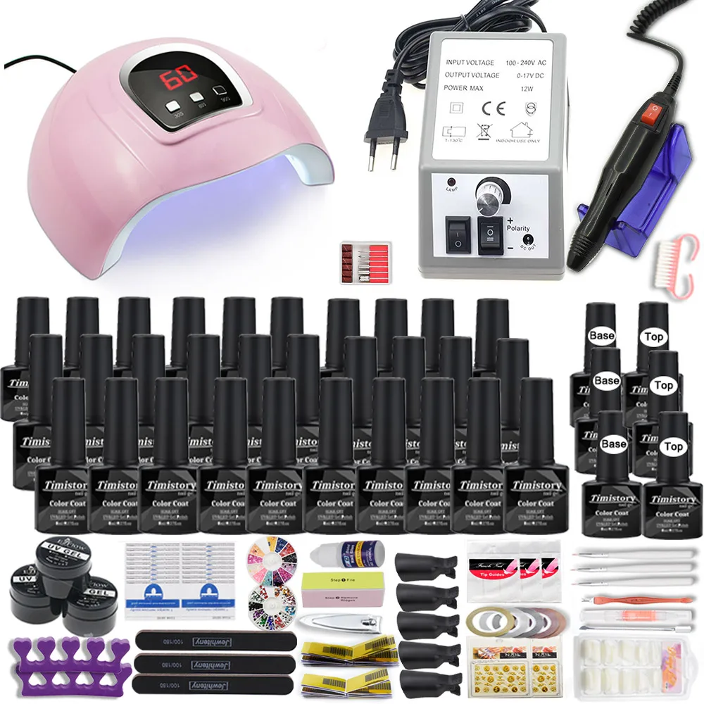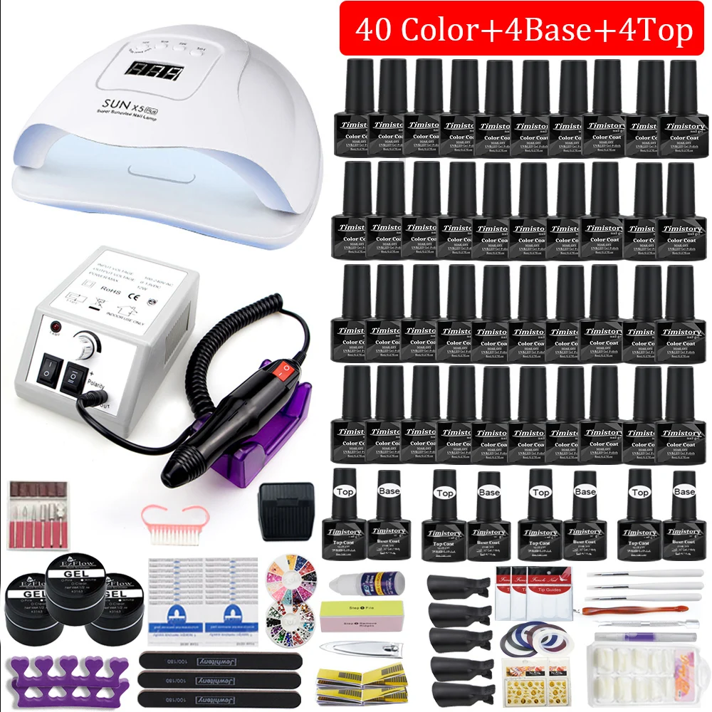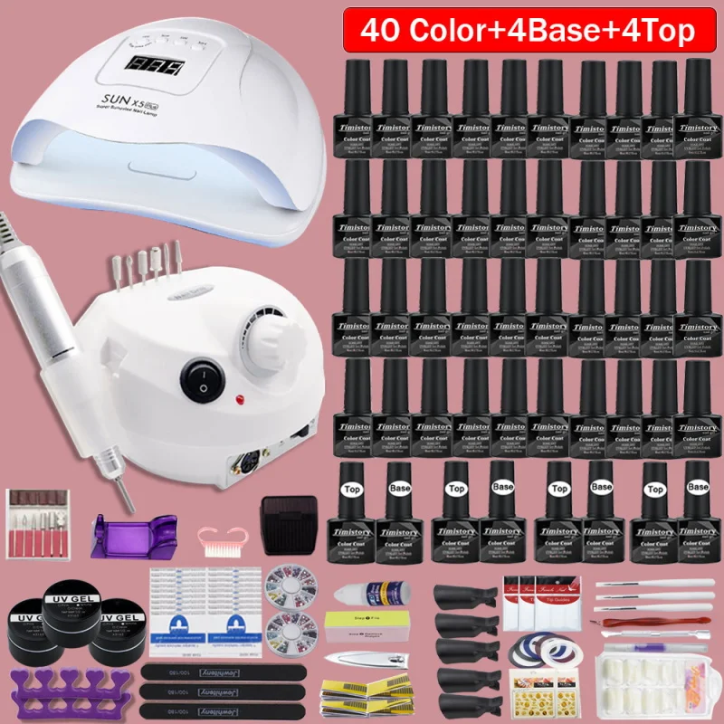 Супер маникюрный набор, 40 цветов, 1208054 Вт, Светодиодная лампа Светодиодный ногтей, набор со всеми инструментами, необходимыми для пилки Электрический маникюр ногтей