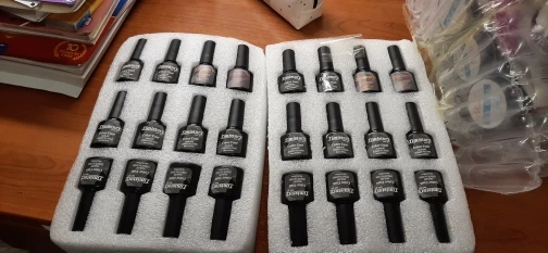Всё так как и в описании, 40 цветов лака, цвета яркие потряснные, есть с блёстками, есть без, набор с полками, аппарат и лампа работают, я довольна, это полностью всё для старта что бы начать заниматься ногтями, было всё идеально упаковано и не пострадало при транспортировки, я довольна.