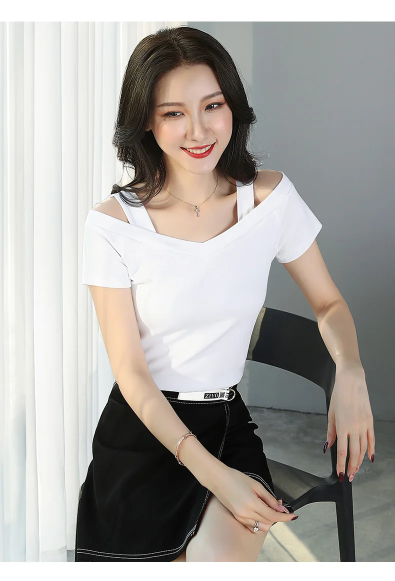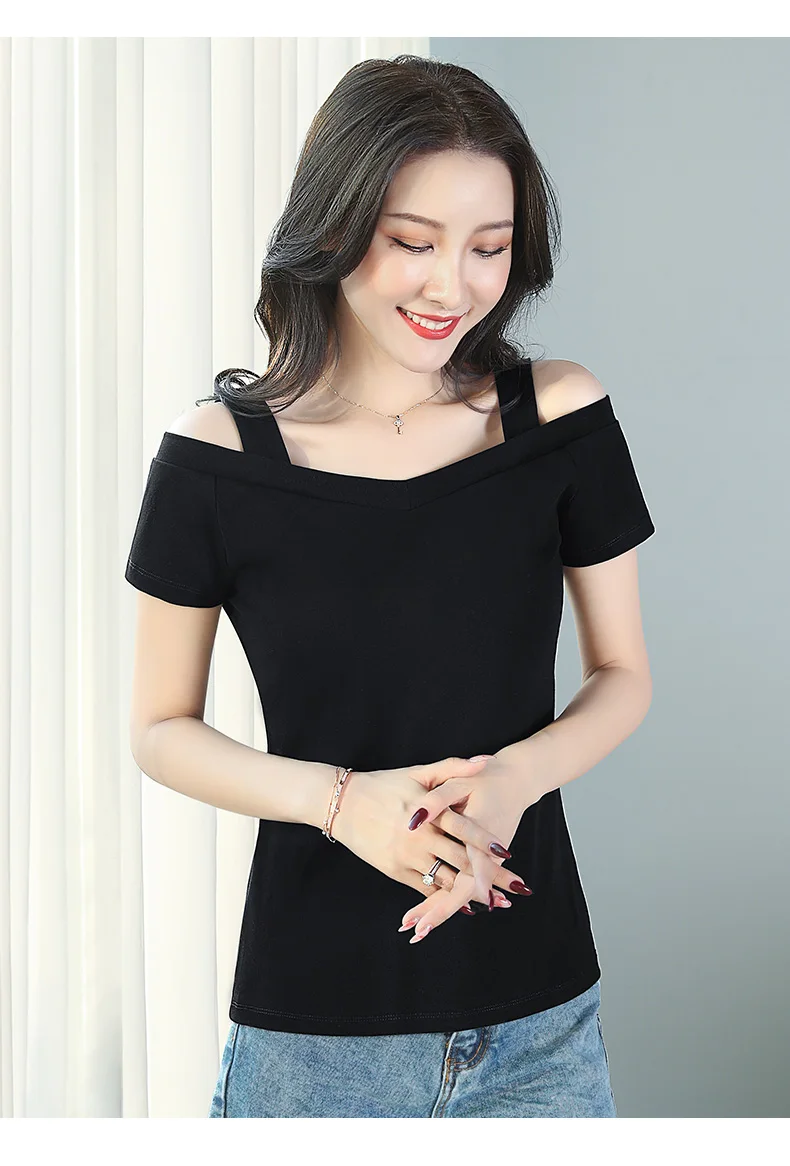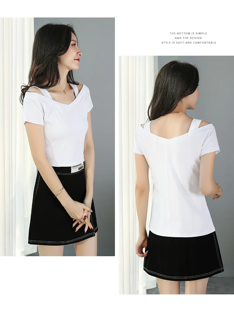 Хлопковая женская футболка с квадратным вырезом, женская рубашка с коротким рукавом, Универсальный женский топ черного, белого, серого, желтого цветов