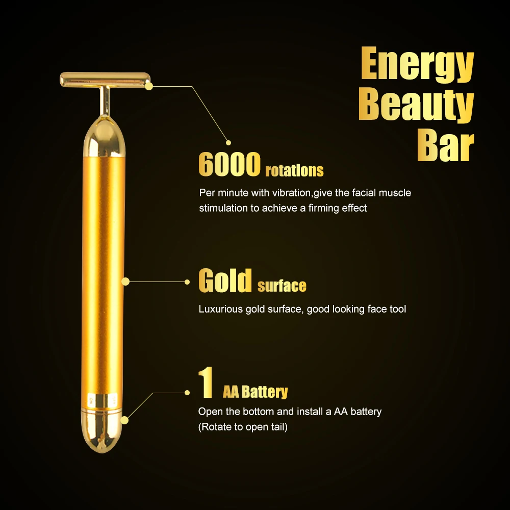 Ролик для похудения лица, вибрирующий массажер золотого цвета 24k лицевой валик для красоты, палочка для подтяжки кожи, подтяжки морщин