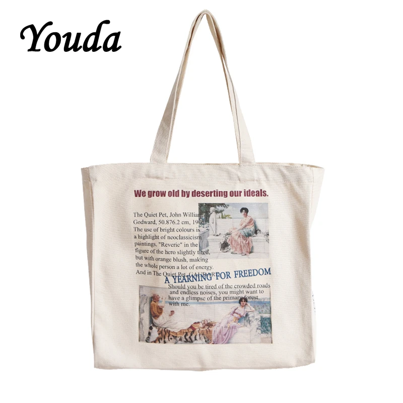 Оригинальный холщовый дизайн Youda, женские сумки для покупок, модная женская сумка на плечо, Классическая сумка для женщин, милые стильные сумки для девушек