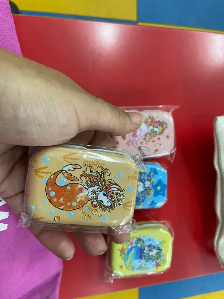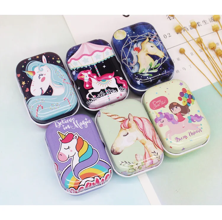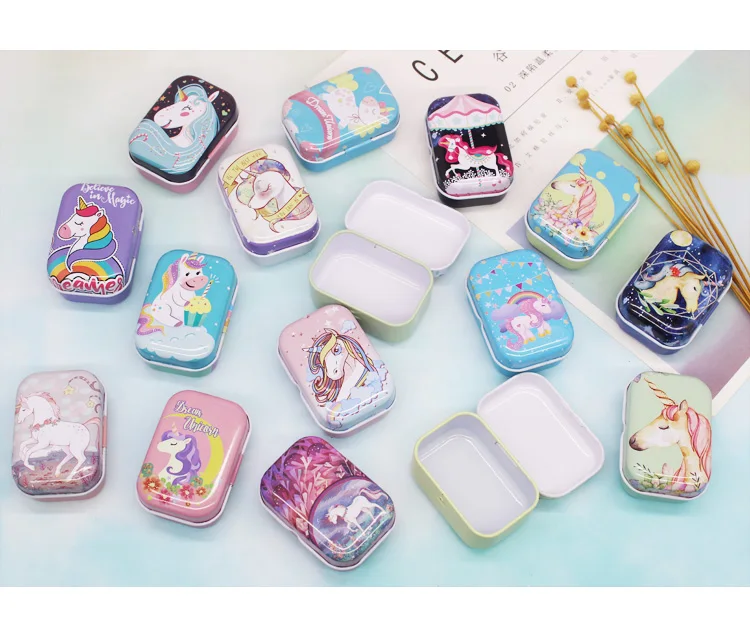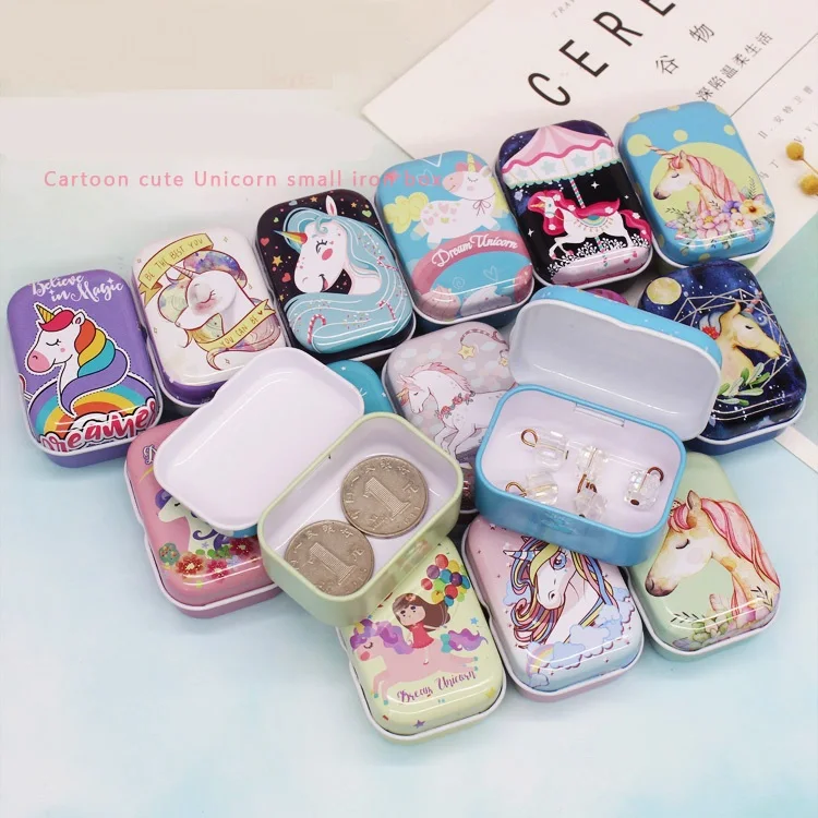 Жестяная коробка с изображением персонажей мультфильмов, маленький бокс для хранения ювелирных изделий с изображением русалки и единорога, Коллекционирование украшений для дома и витрины, 1 шт.