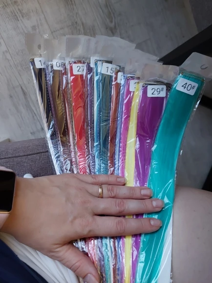 Шло ну очень долго, месяца два. Думала, что будут чуть-чуть толще (но думаю это моя вина, не читала описание). Синтетика, немного лезут ( возможно это было только при первом использовании и больше не будет, не знаю), оказались достаточно длинными, но я их подрежу.как смотрится очень нравится, носить точно буду) очень хорошо и прочно крепятся