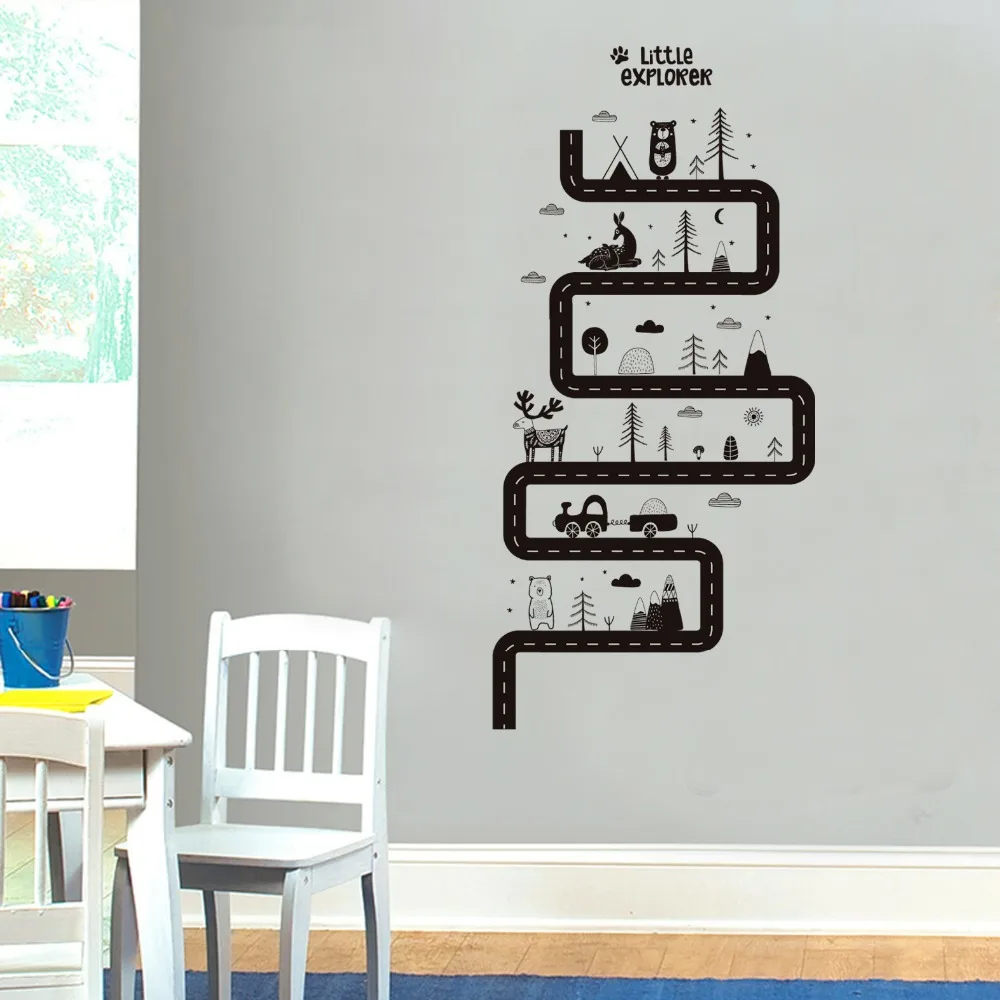 Мультяшные животные дорога автомобиль наклейка на стену детский сад...
