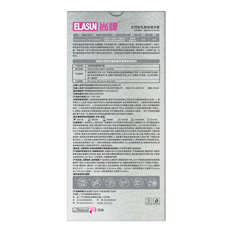 100 шт.упаковка, натуральные латексные презервативы Elasun 100