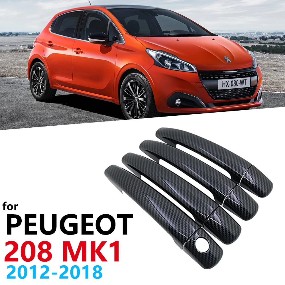 Черное углеродное волокно внешняя дверная ручка Крышка для peugeot ...