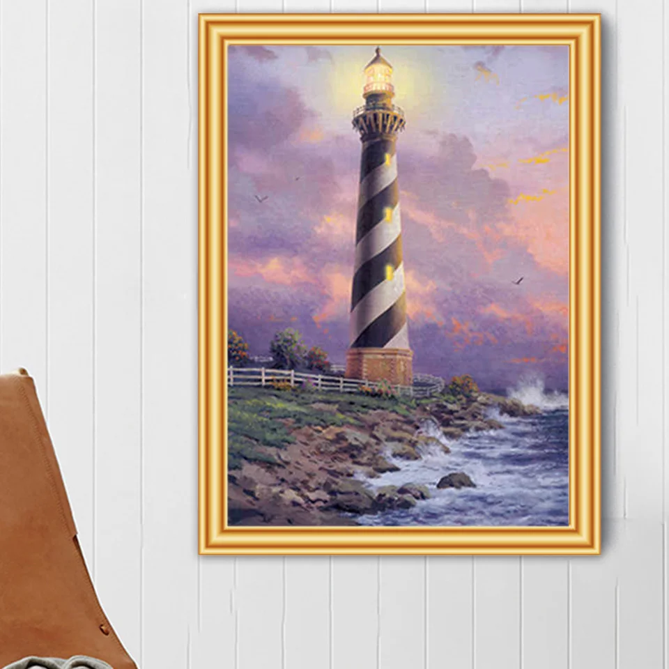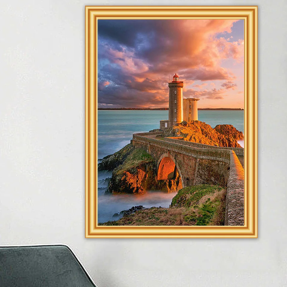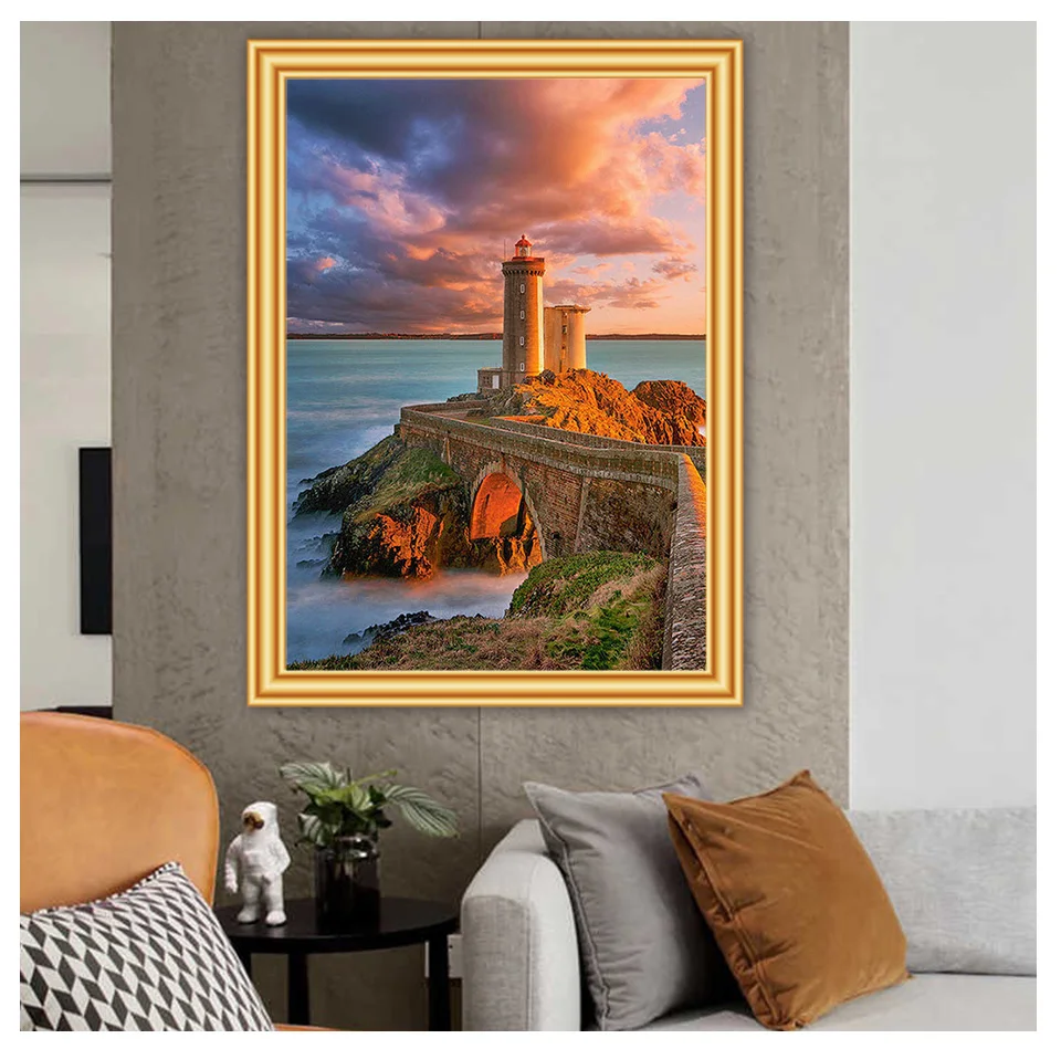 5D алмазная живопись пейзаж, морское море, вилла, маяк, вышивка крестиком, алмазная вышивка, мозаика, стразы, Декор для дома