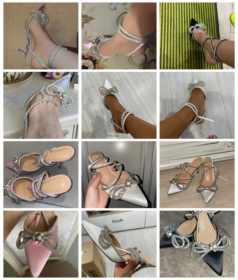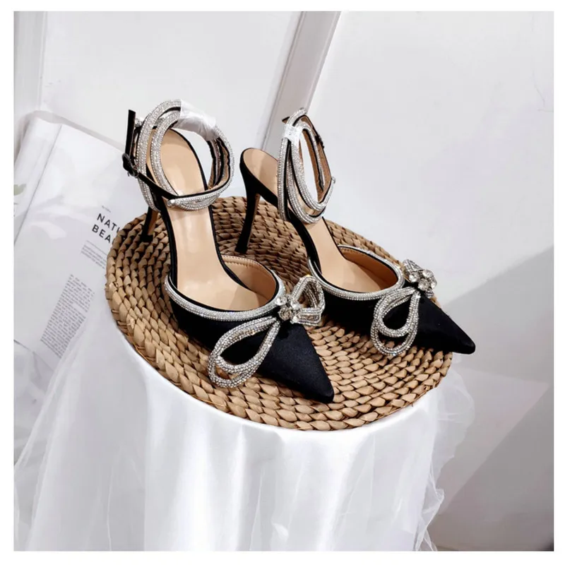 Женские сандалии стразы с бантом-бабочкой, босоножки на тонком кабл...