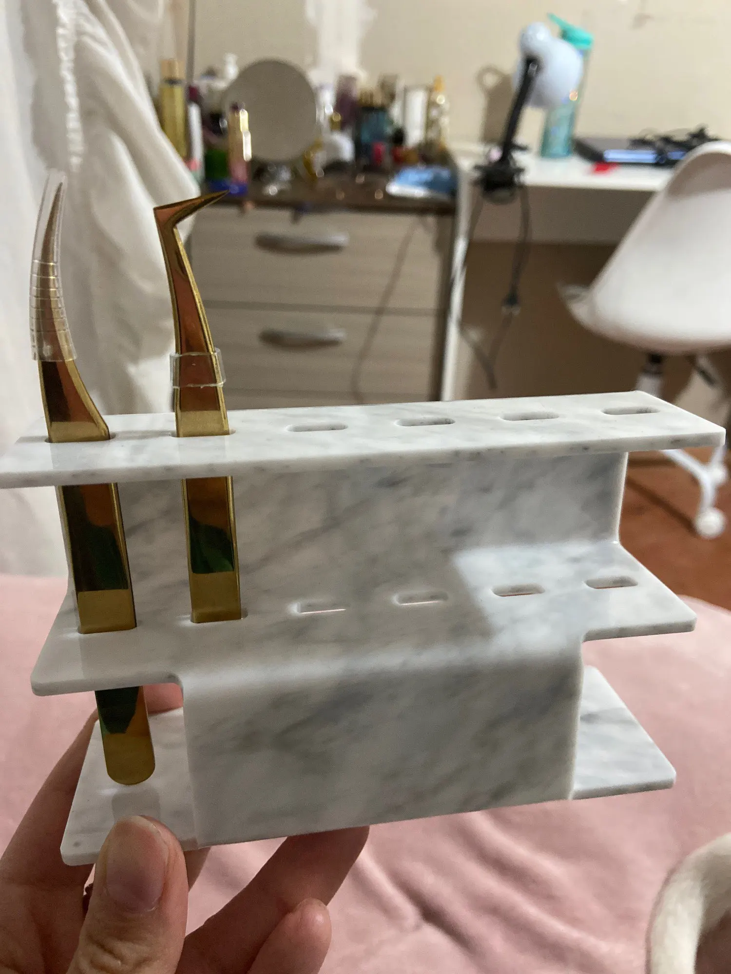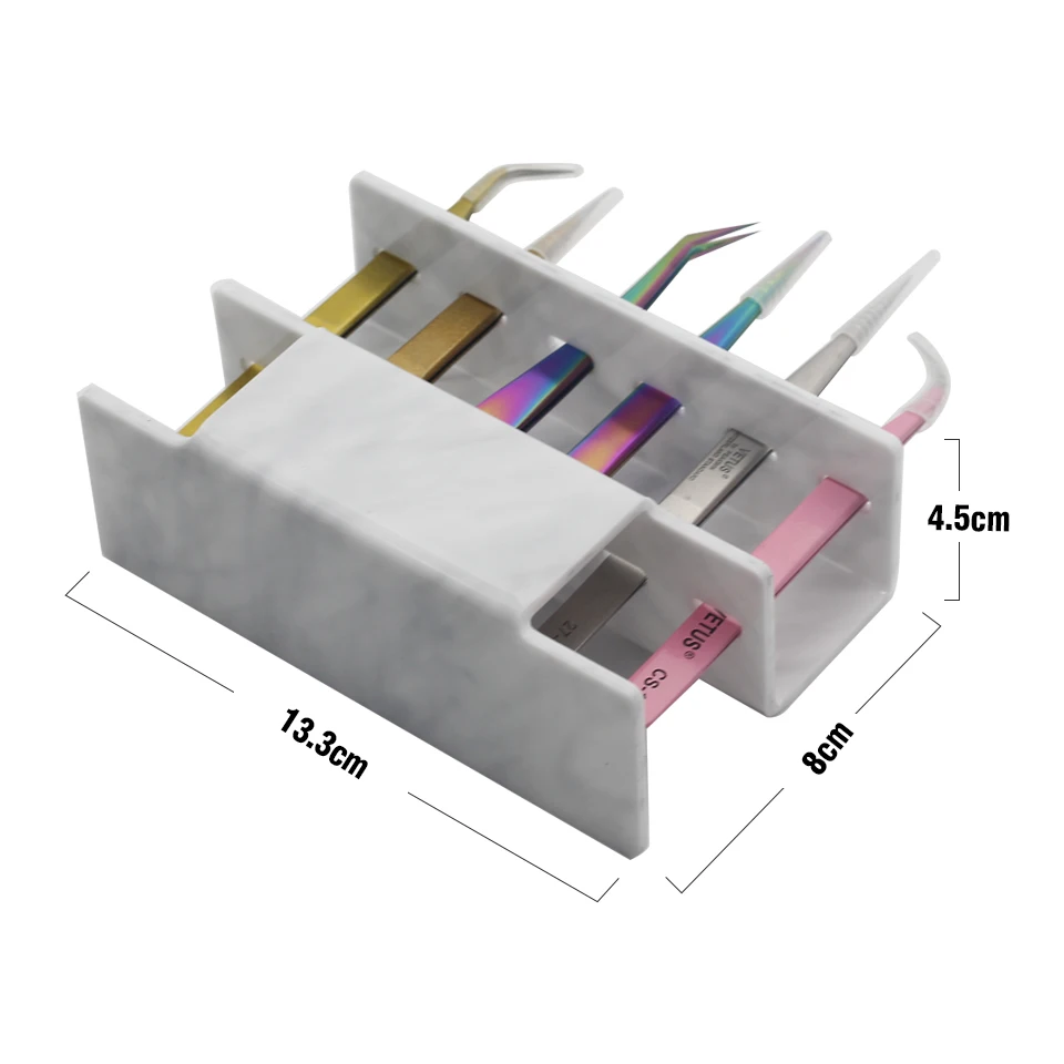 Пинцет с 6 отверстиями для хранения ресниц, черныйбелыймраморный узор