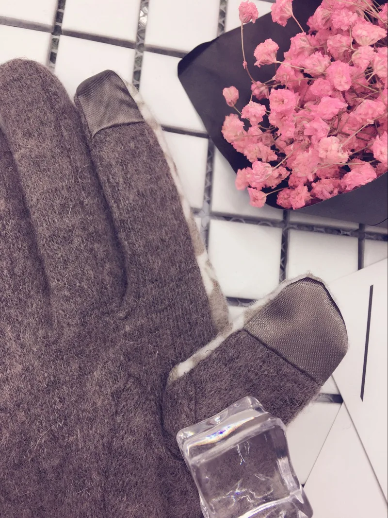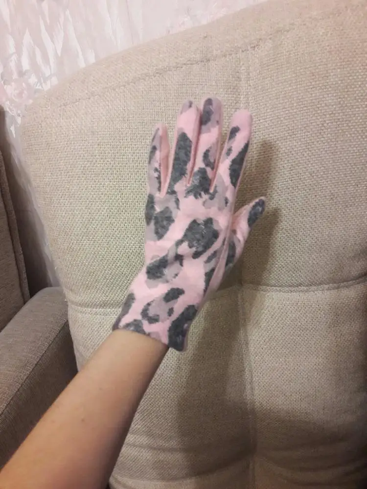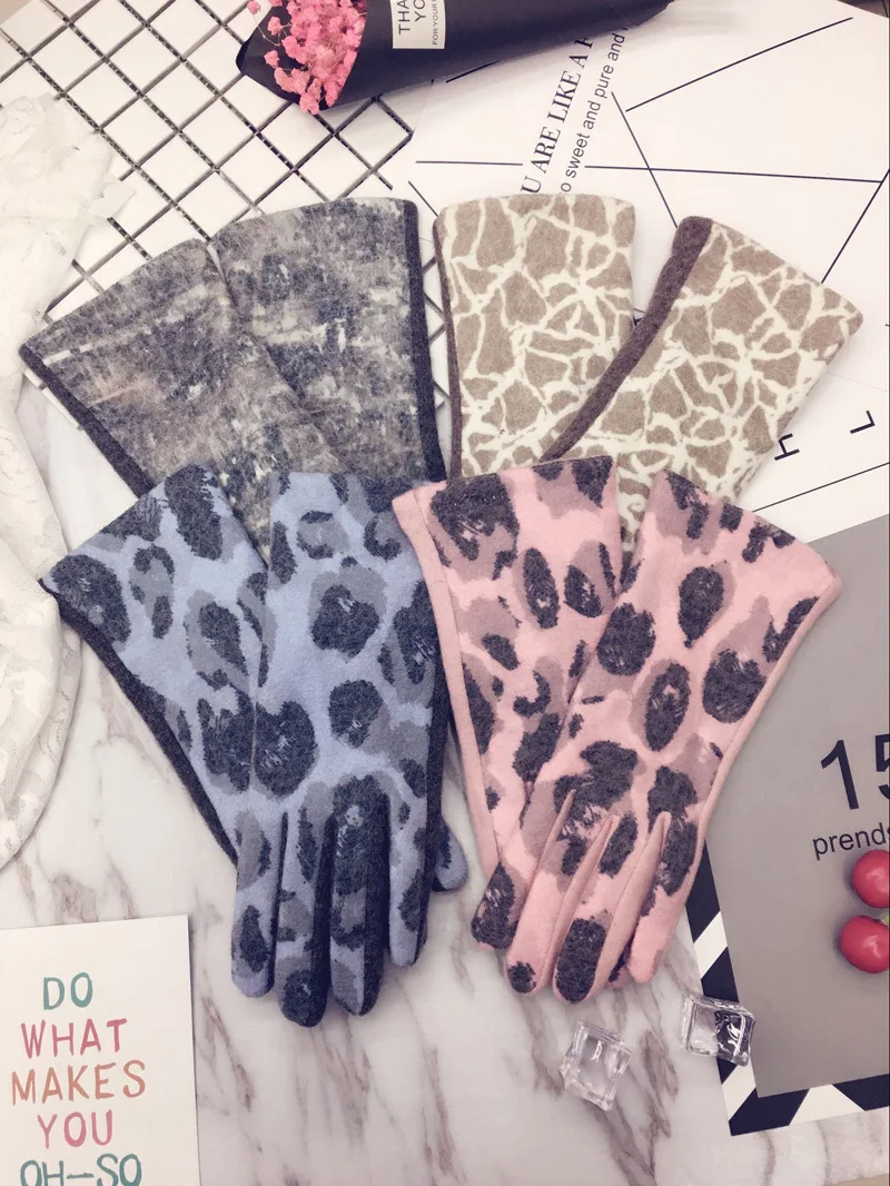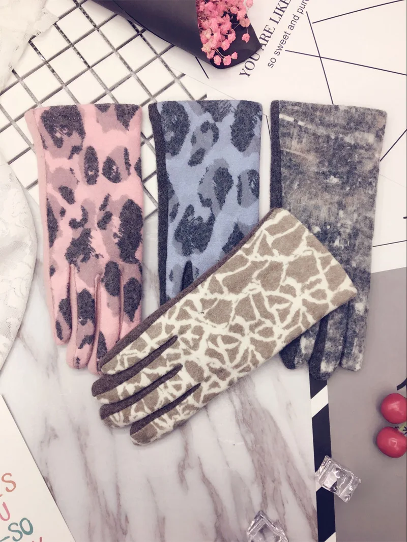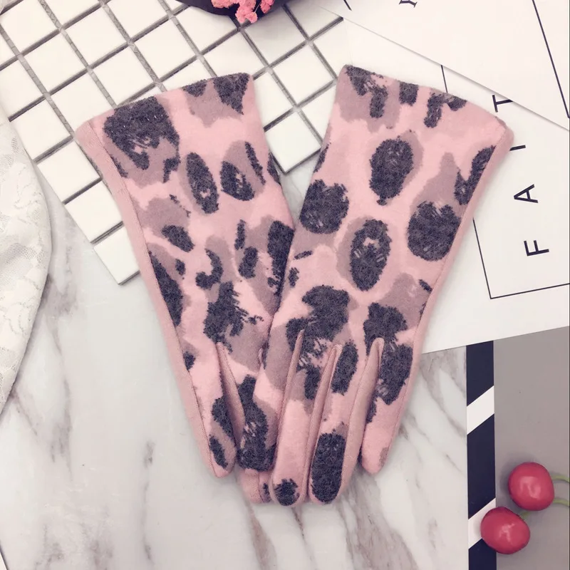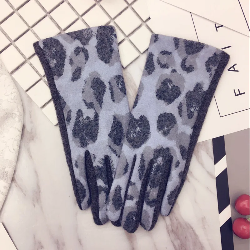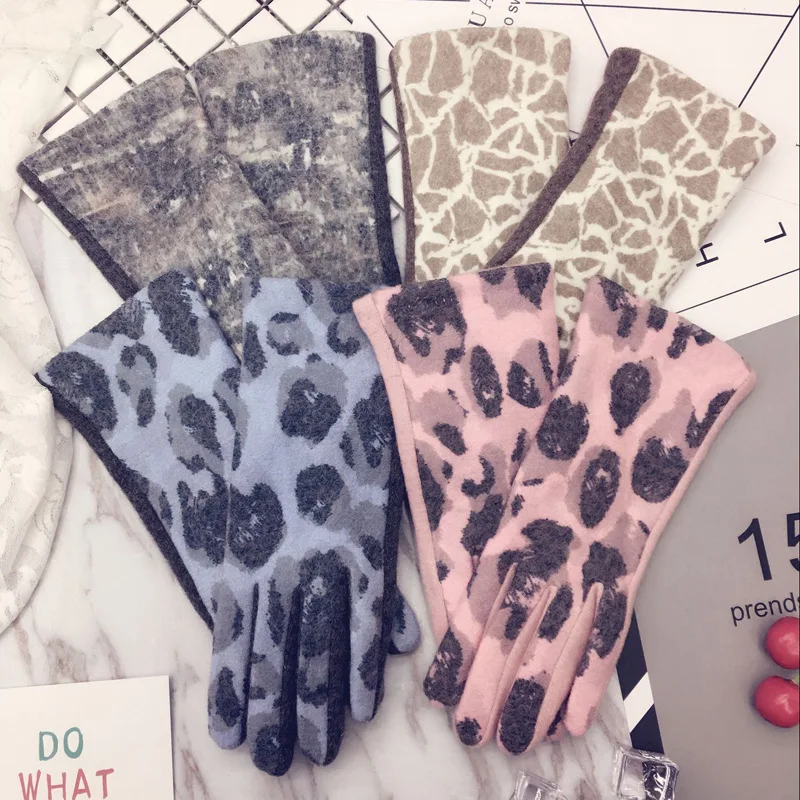 Варежки кашемировые женские, зимние, вязаные, с леопардовой вышивкой, для сенсорного экрана, плотные, для вождения, J74