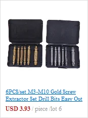 Состояние на 100% абсолютно новый и высокое качествоНаименование: 6 шт./компл. позолоченный винт сверло для извлечения наборМатериал: быстрорежущая углеродистая сталь 4341Цвет: как показаноКоличество: 6 шт./компл./длина: 51 ммСпособ применения: инструмент для бурения/флипа/экстрактаСпецификация: HSS 4341 #0 ~ #4