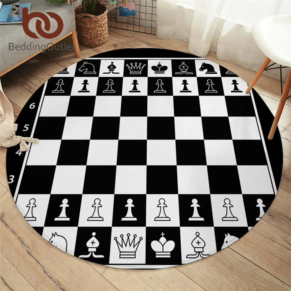 Постельное белье, шахматная доска, ковры для спальни, игры, круглый коврик для спальни, черный и белый напольный коврик, квадраты, детский игровой коврик 150 см