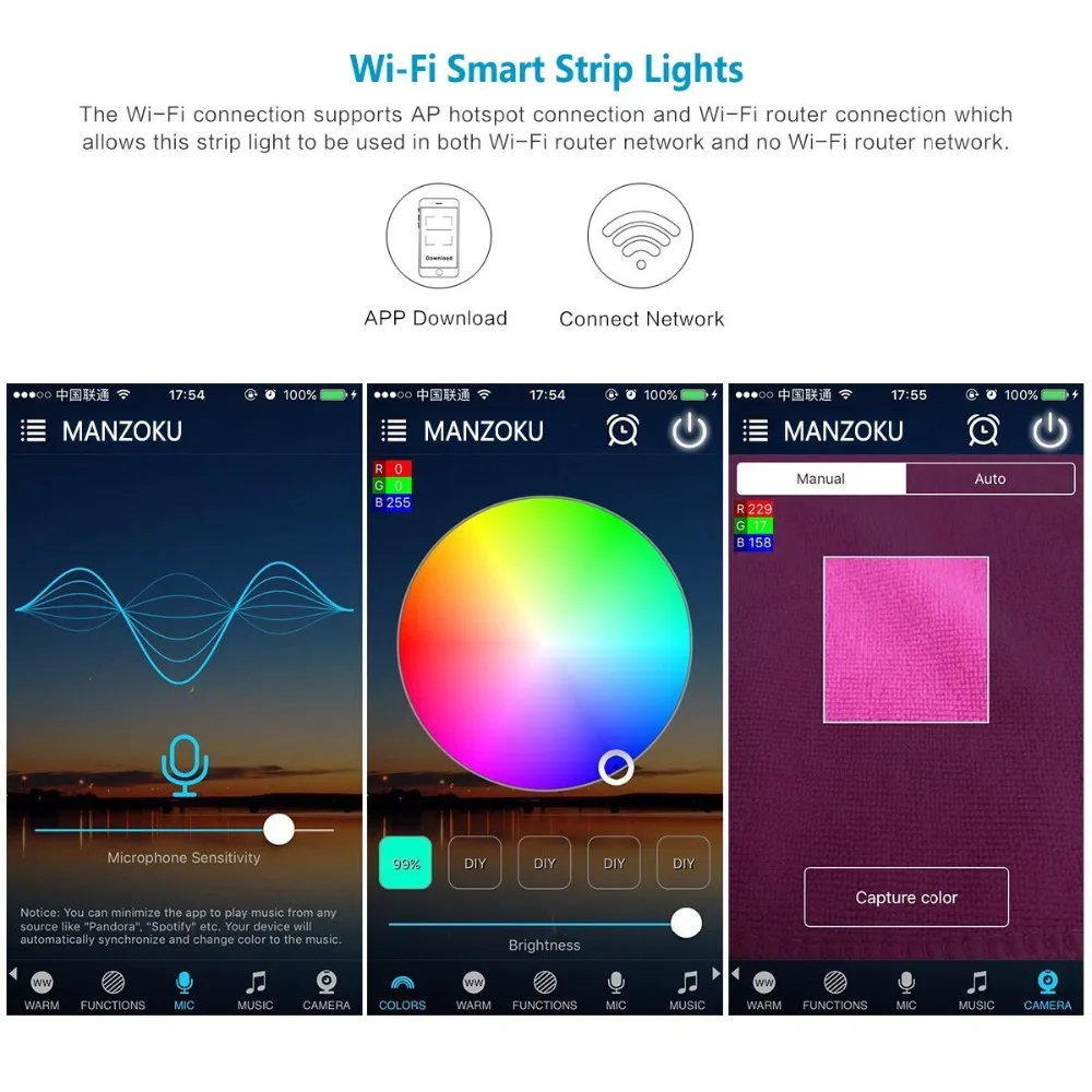 【Высококачественная Светодиодная лента ① эта Светодиодная лента для изменения цвета имеет 300 светодиодных лент SMD5050 RGB, Smart IC, IP65 водонепроницаемость, 32,8 футов в длину и может быть разрезана между каждые 3 светодиодами. ② Простое подключение к Wi-Fi в соответствии с руководством, мощное приложение очень проста в использовании ③ Это затемнение, изменение цвета, оно имеет 16 миллионов цветов, и вы можете сделать свой собственный цвет. ④ Встроенный таймер, вы можете установить таймер, чтобы включить или выключить светодиодный светильник с регулируемой яркостью.