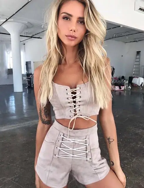 Стиль:Сексуальный укороченный топ на шнуровке и комбинезон со штанами Размеры:Размеры S M L XL