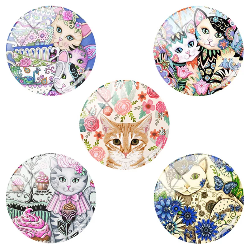 JWEIJIAO Красочный цветочный кошка Шарм картина 12/15/16/18/20/25 мм Круглый купол стеклянный с плоской задней частью, сделай сам, ювелирное изделие для производства комплектующих для HT482