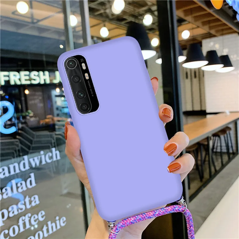Матовый чехол для Xiaomi Mi Note 10 Pro Lite, чехол из жидкого силикона с веревкой через плечо для Xiaomi Mi Note 10 Pro Lite, 9 Max, 8, 8T, 8A, 7