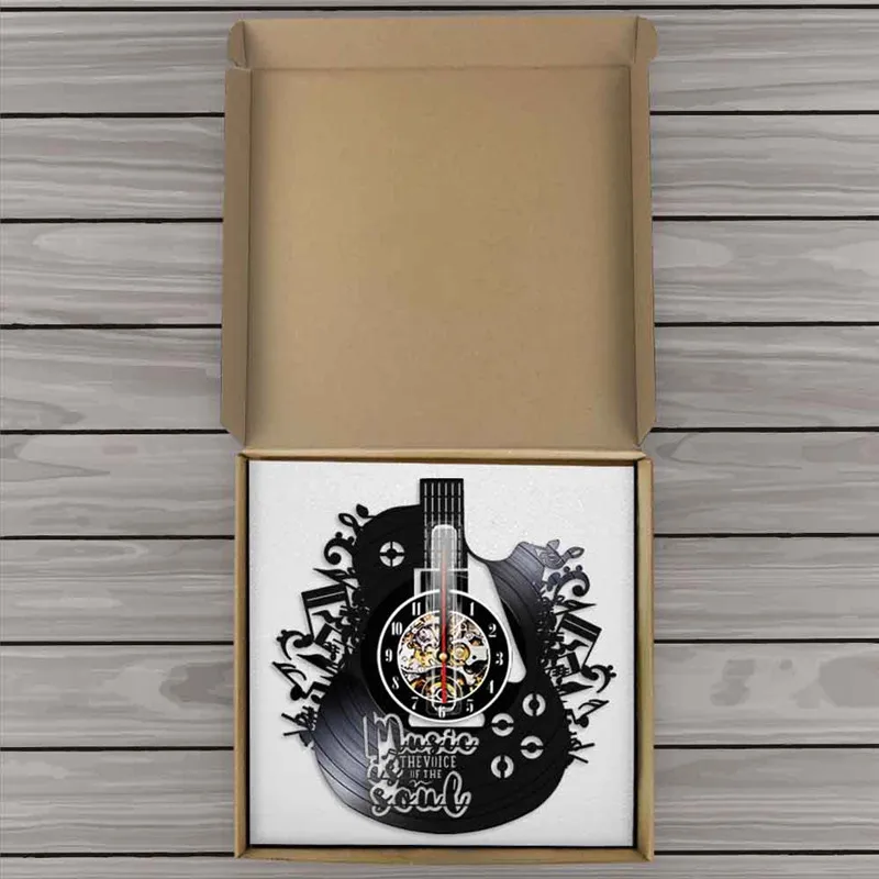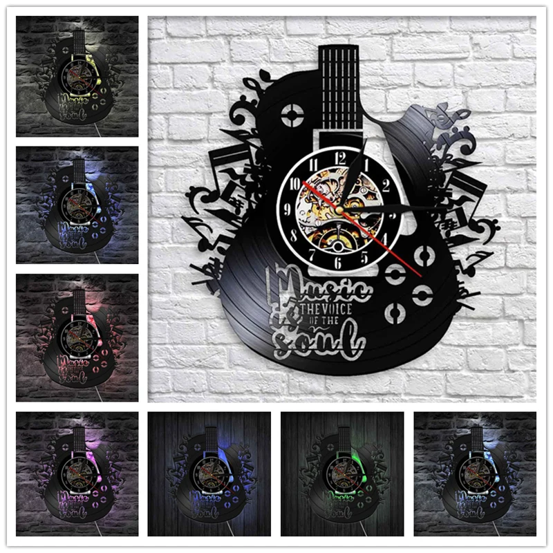 Настенные часы с виниловой пластинкой в форме гитары, креативный дизайн, украшение для дома, спальни, бара, ночсветильник, подарок