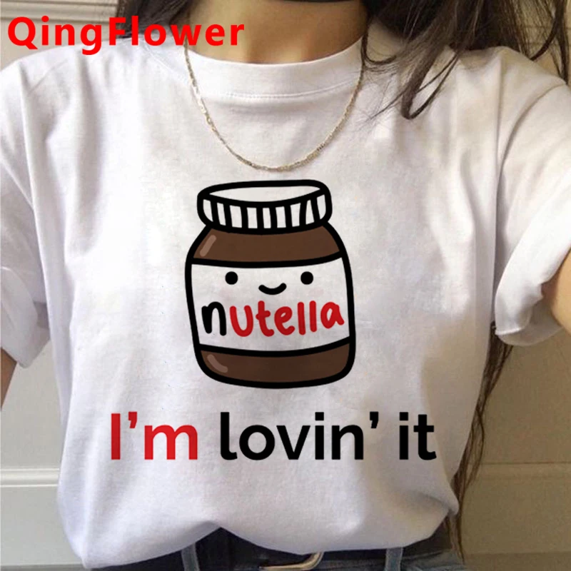 Юмористическая футболка Nutella Harajuku с мультяшным рисунком, женская футболка с графическим рисунком Kawaii Ullzang, милая модная футболка аниме, летние футболки для женщин