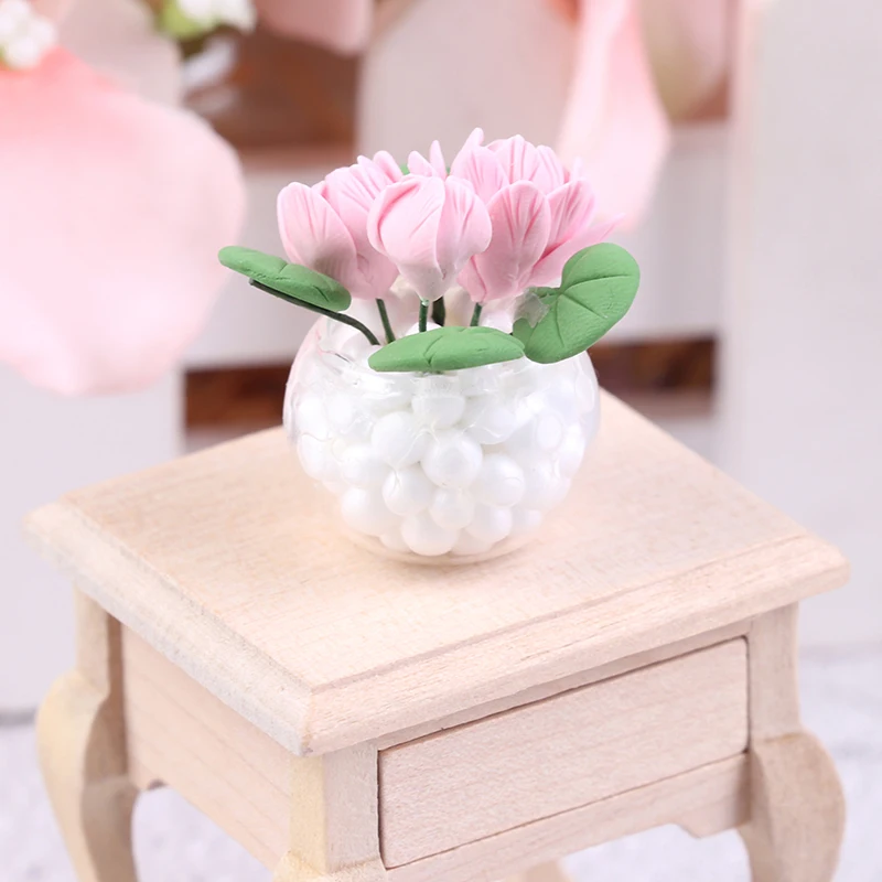 Мини Лотос Горшечное растение розовый цветок Лотос кукольный домик Декор Детский подарок мебель игрушки 1:12 миниатюрный кукольный домик