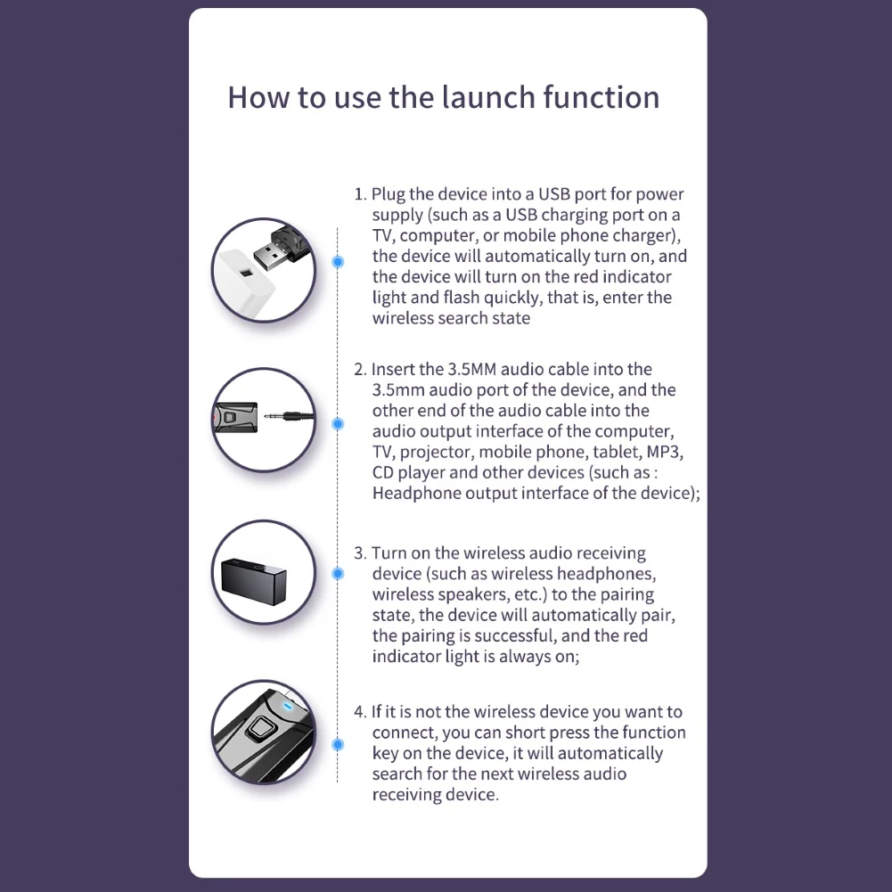 Режим передатчика (TX): он может Беспроводная передача звука с вашего телевизора, не Bluetooth, домашней стереосистемы или CD-плеера на Bluetooth наушники или колонки.
