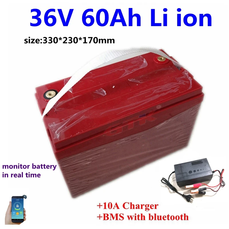 GTK глубокий цикл 36В 60AH литий-ионный аккумулятор для лодки пропеллер RV резервного питания ebike скутер + 10A зарядное устройство