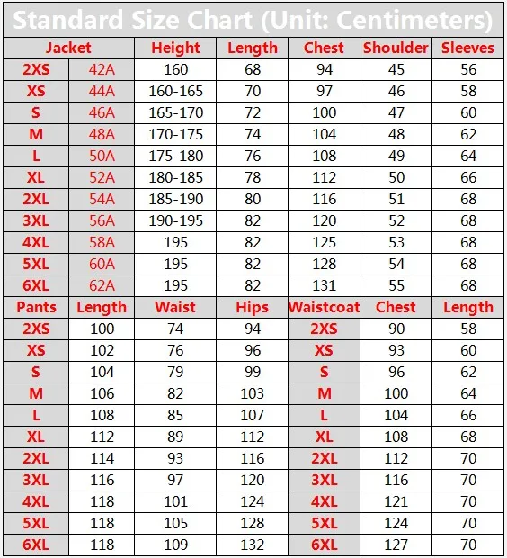 Примечание: стандартная таблица размеров означает только измерения готового костюма. Погрешность 1-2 см.