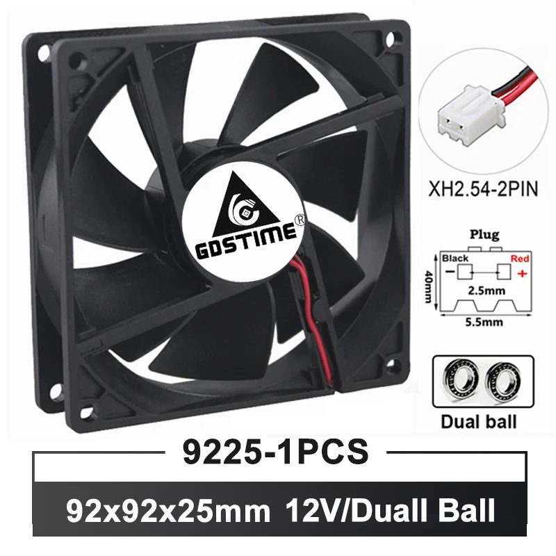 Gdstime 1 шт. DC 12V 92mm x 25mm 9cm 9225 2Pin шарикоподшипник охла...